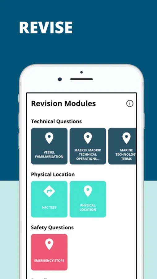 There are two types of questions; a physical location question (which requires the crew to scan an NFC tag with their phone), or a multiple-choice question. The multiple-choice questions have four bespoke, viable answers, all based on vessel documentation. Hyperlinks or section references for the manuals can be added to encourage crew members to go to the manuals and find the answers themselves.