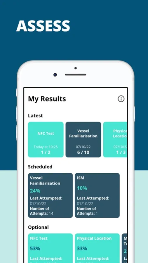 Crew dashboard: All results are shown immediately to aid learning, and a percentage score is shown for each module to highlight areas where improvement is needed.
