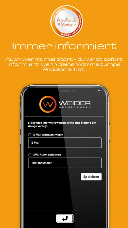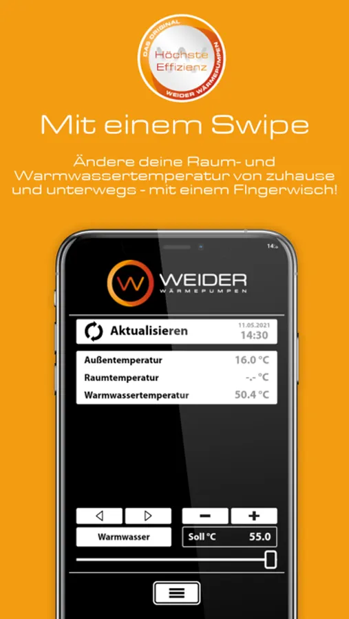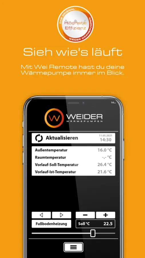Das ist die Smartphone-Fernsteuerung für deine Weider Wärmepumpe.