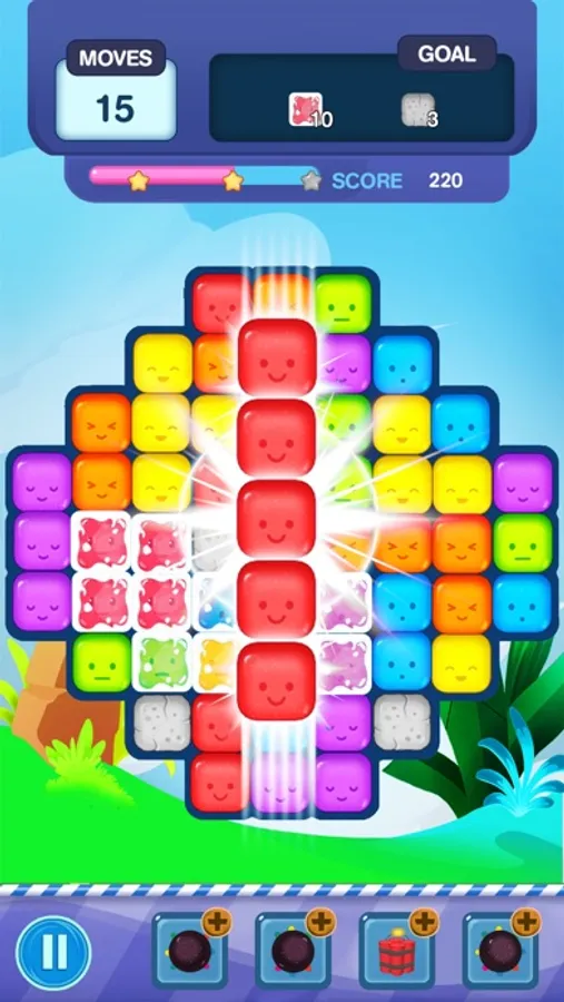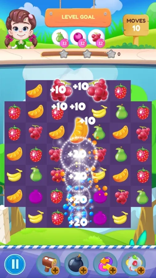 - Hundreds of magic levels where you either have to smash candy, shoot with animals/bubbles, match 2 or more blocks and draw lines between as much identical fruit as possible to solve the tasks.