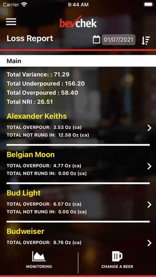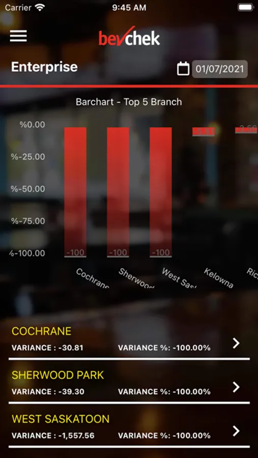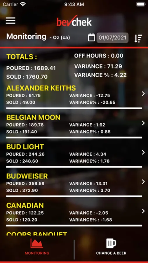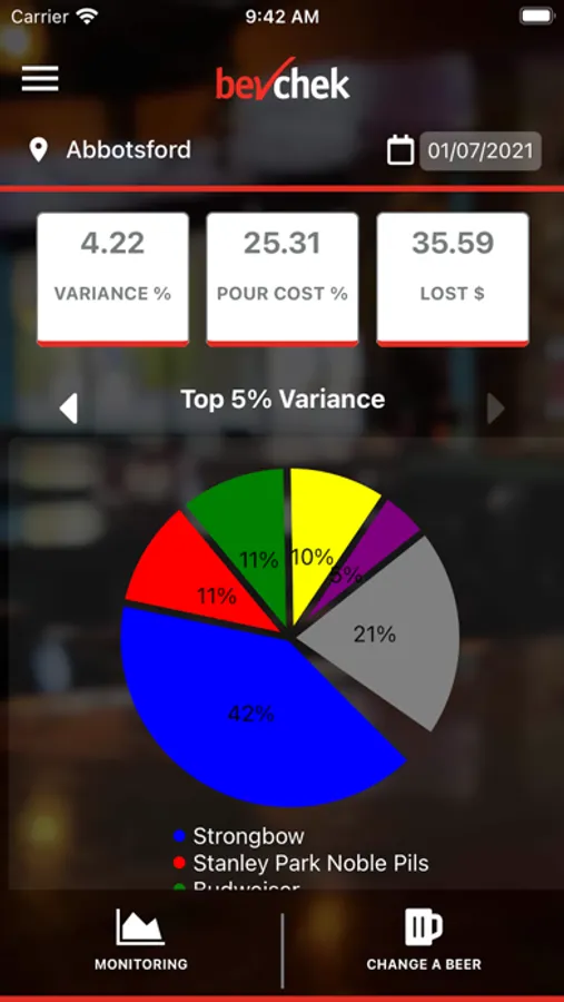 The Bevchek Client application is designed to show a current Bevchek Client real-time metrics of their location based on their configuration of the Bevchek system. This information is updated in real-time and accessible 24 hours a day as it occurs.