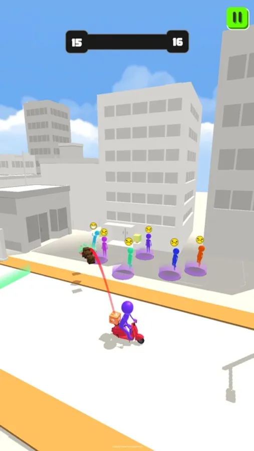 Hyper Delivery Game is a simple, fun to play hyper casual game in which you deliver packages around town on your delivery bike and make customers happy. The controls are simple: tap on the customer waiting for the package and deliver the parcel.