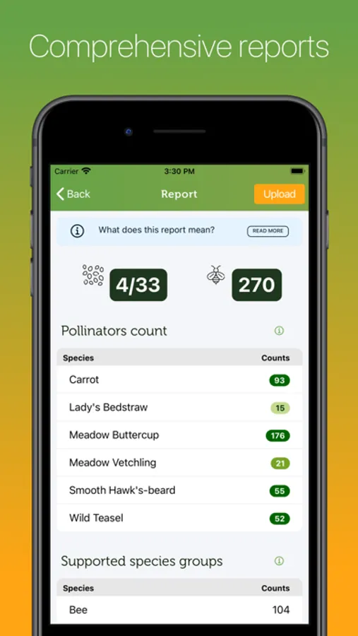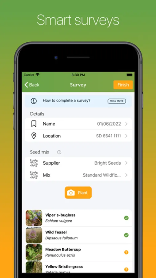 E-Surveyor helps you to assess the quality of the wildflower habitat you have created on your farm. The app combines image recognition of plants and a rich data set of seed mixes and plant attributes to provide reports on habitat quality.