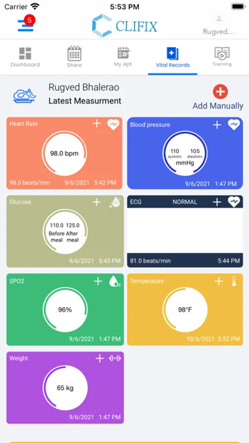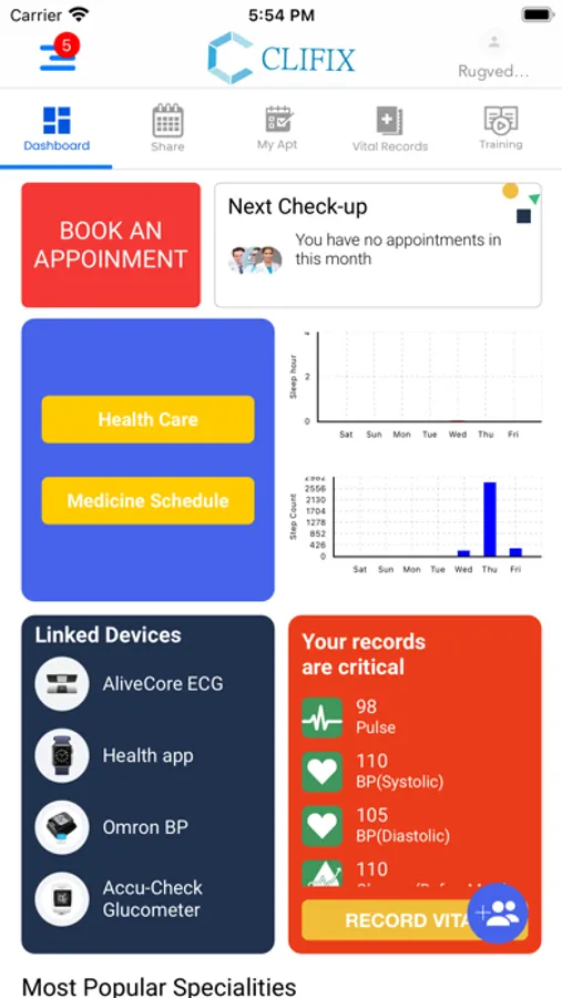 We integrate with the health app (HealthKit) to read and track your vital records like steps, sleep, heart rate, temperature, glucose, SPO2 data and showing them in the app to keep the track of user vitals.