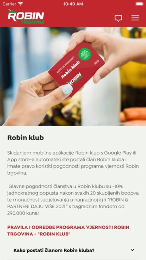 Mobilna aplikacija programa vjernosti Robin trgovina – Robin klub će Vam donijeti: