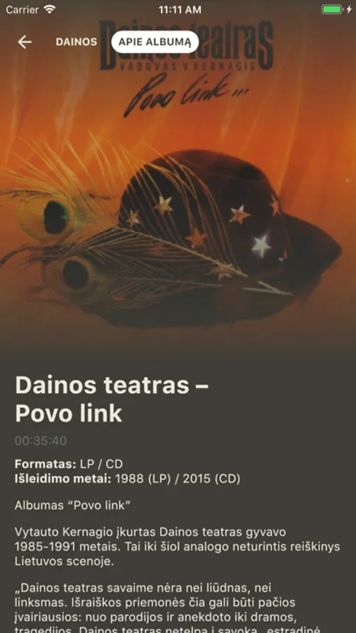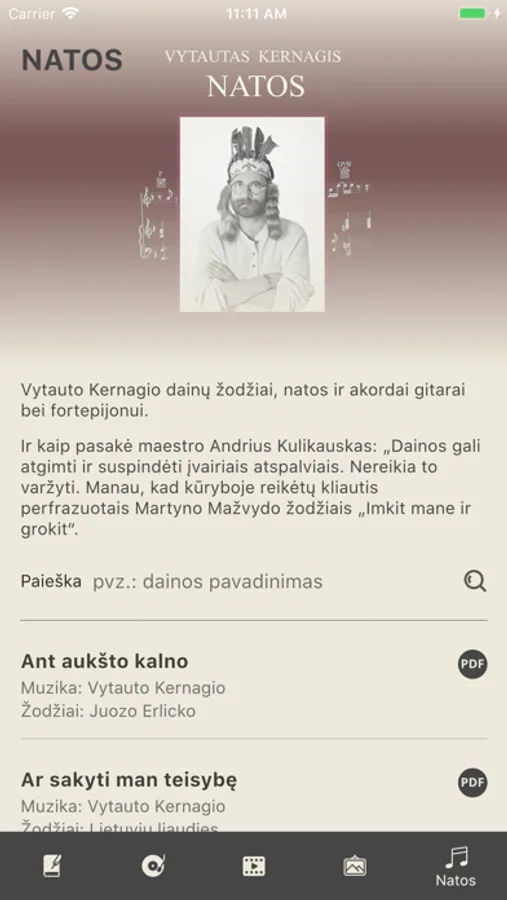 Programėlėje surinktas visas Vytauto Kernagio kūrybinis palikimas. Nuotraukos, interviu, vaizdo bei garso įrašai. O svarbiausia – visų Vytauto Kernagio sukurtų dainų natos, akordai bei tekstai.