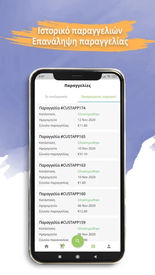 •Iστορικό παραγγελιών και επανάληψη παραγγελίας