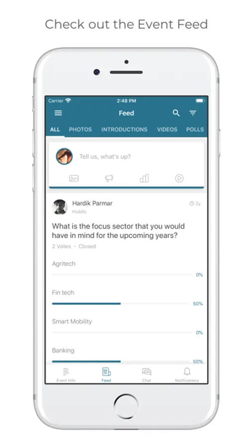 6) Post pictures and status updates on the event's private social feed.