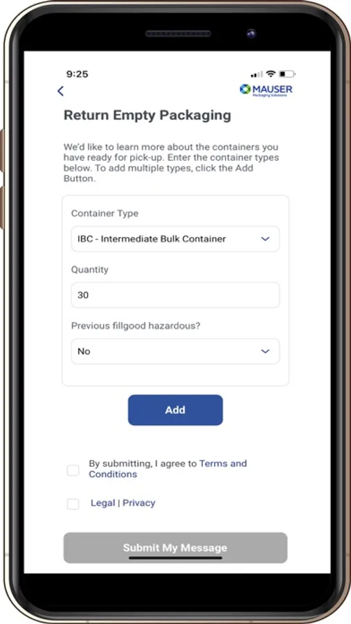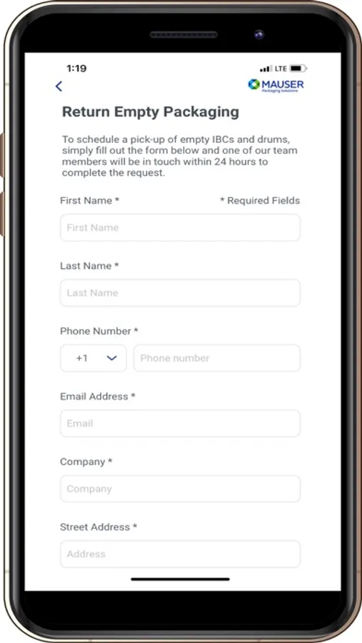 It’s more convenient than ever to return empty IBCs, plastic drums, steel drums, and DrumGuard units with the Mauser Packaging Solutions mobile app. Use our mobile app to start the collection process – whether you’re at work or at home.