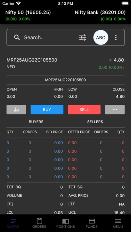 • Manage Derivative positions with Greeks values