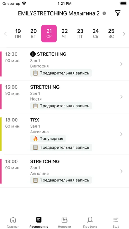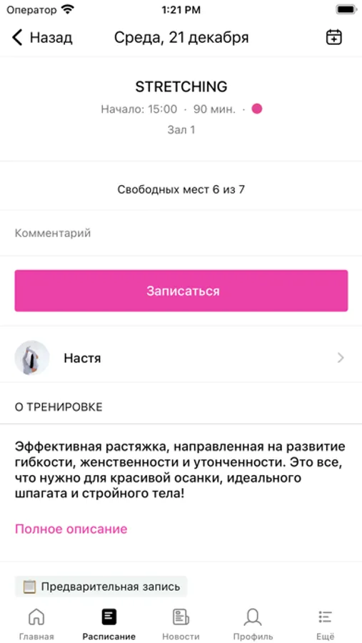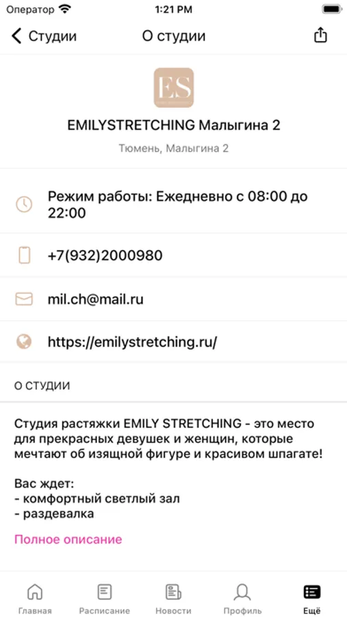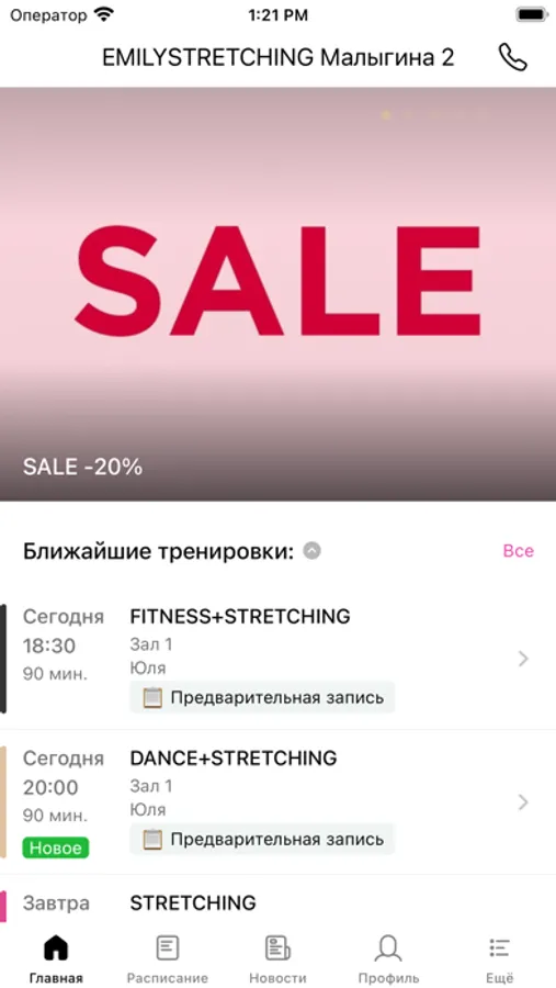 С помощью приложения вы сможете записаться на тренировки, посмотреть расписание студии, получить информацию о специальных предложениях и акциях.