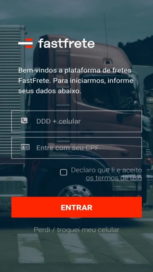 - Baixe o App: Na loja de aplicativos do seu celular, basta procurar por FastFrete Motorista e clicar em instalar;