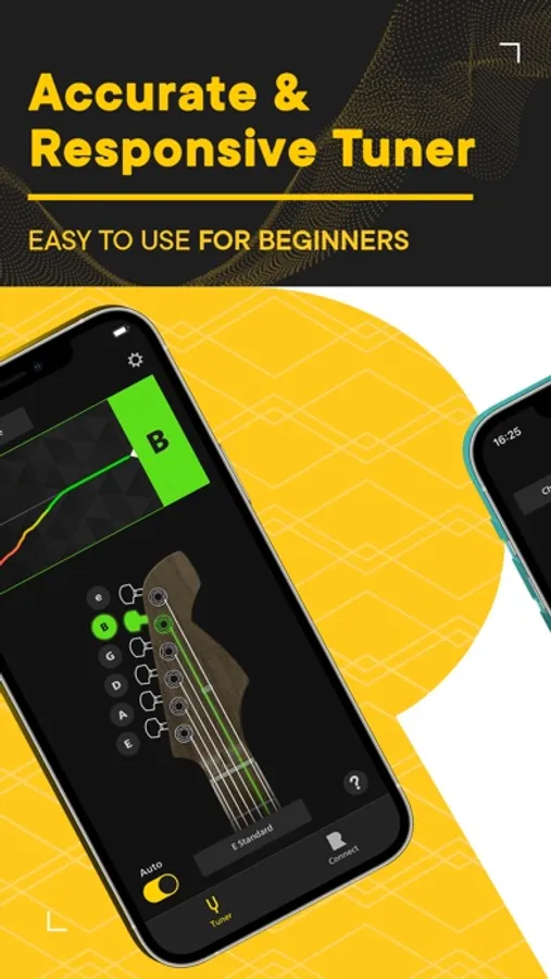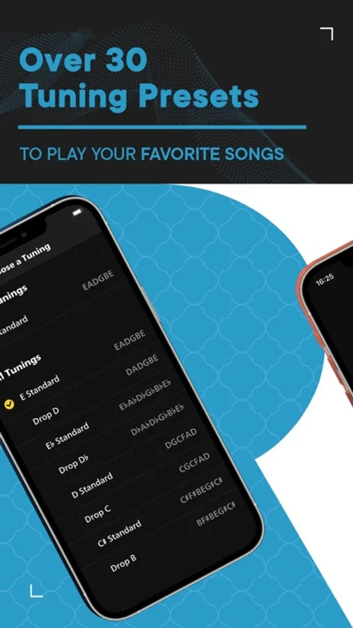 • Audio previews for each string in selected tunings gives a reference to tune towards