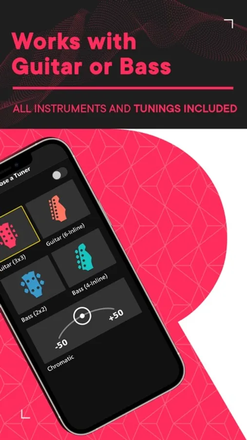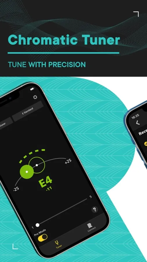 • Use the chromatic tuner to check your intonation and setup a guitar or bass.