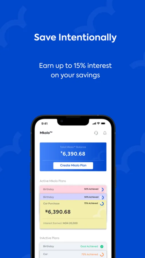 - Mkolo - Earn up to 15% interest per annum with our automated goal-based savings feature and watch your money grow!