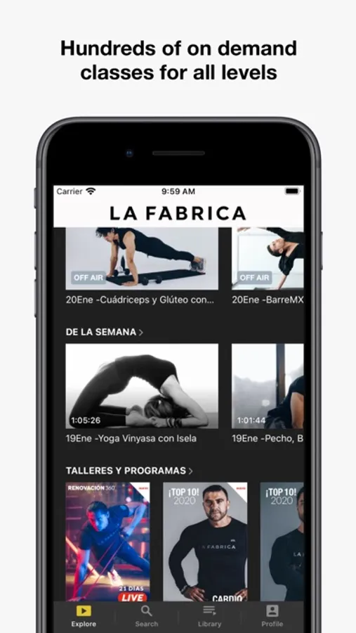 Workout at home with the best coaches , cardio, strength and yoga classes with the La Fabrica Play app.