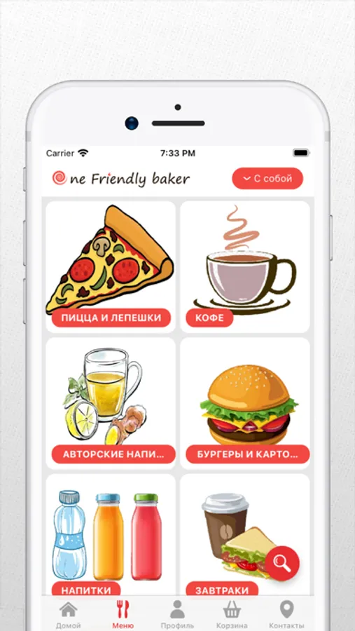 Как сделать заказ "One Friendly baker": выберите понравившиеся позиции из меню, добавьте их в корзину и перейдите на экран оформления заказа (по нажатию на иконку корзины).