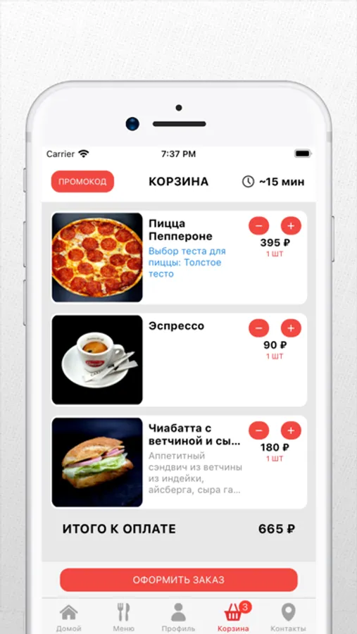 На экране заказа добавьте свою контактную информацию для первого заказа: Имя, Номер телефона и адрес электронной почты, чтобы получать уведомления об оплате.
