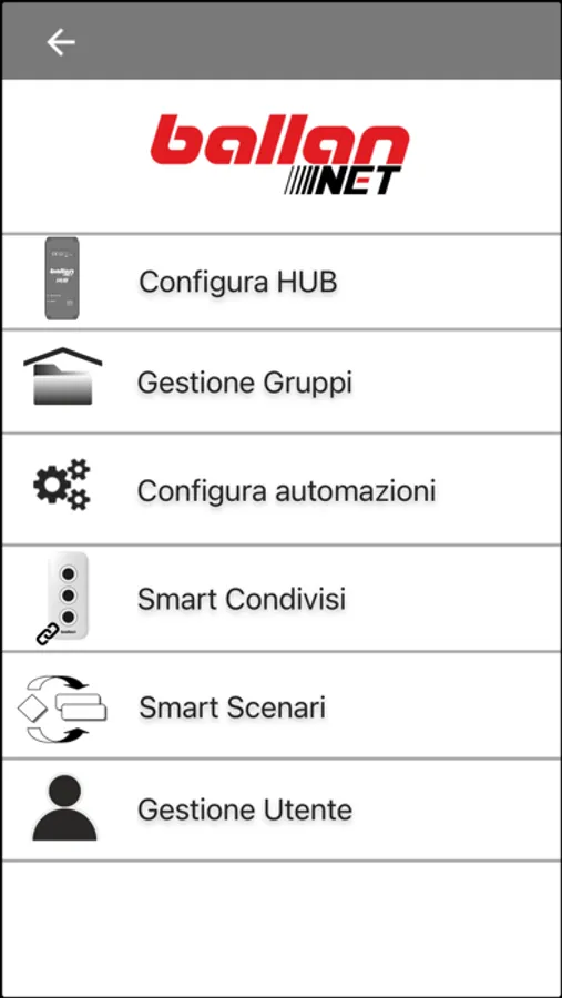 BallanNET app consente di configurare un amministratore e più utenti e di definire scenari di utilizzo.