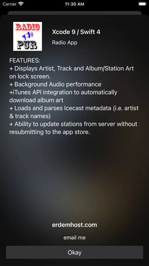 Radio player for macOs and iOs devices. For Apple devices MacPro, MacBook, iMac, MacMini, iPad, iPhone, iPod Touch. When the radio is called up in the player, the currently played song name, artist and album cover are output.