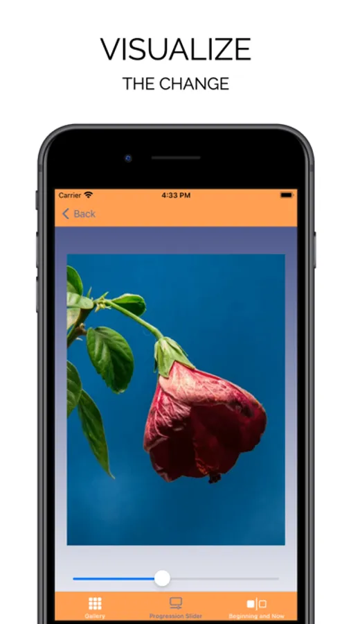 ProgPics lets you make your own categories for the different things you want to visualize your progress with. Whether its fitness goals, watching your pet grow, renovating a room or any other project you have in mind. Effortlessly see the change over time by sliding through your pictures or comparing the first to the last.