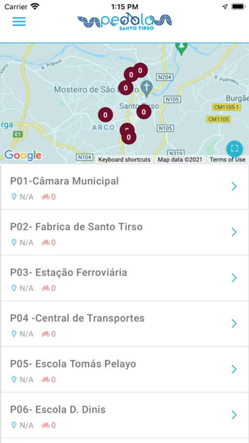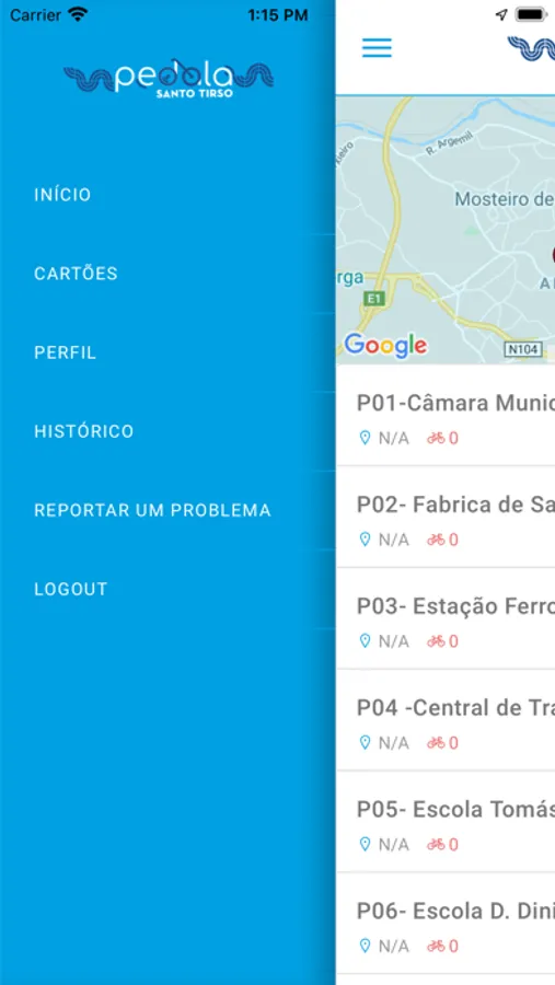 • VISUALIZAR AS ESTAÇÕES E BICICLETAS: É possível verificar no mapa onde se encontram as estações mais próximas e as bicicletas disponíveis.
