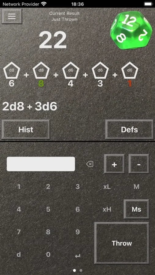 Dice feature brings you regular dice that give numbers as result, but you may freely pick the number of dice and how many sides they have. You can combine dozens of different dice in a single throw if you like. You may also define your own weighted dice where the chance of each side is freely configurable.