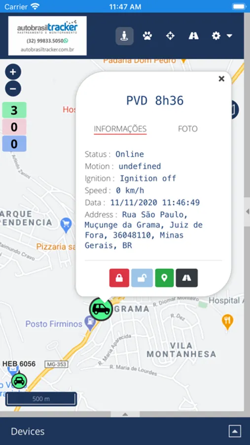 - Visualize de forma rápida e prática, a posição do seu veículo em tempo real no mapa.