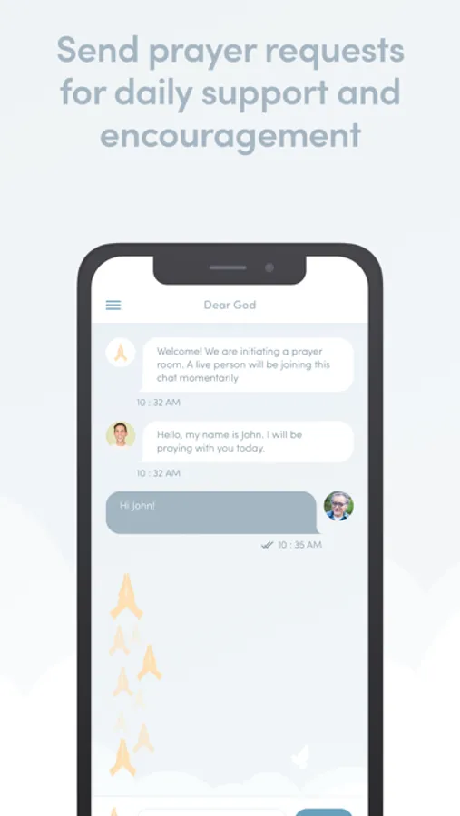 Dear God is a prayer messaging app that was created to provide support for your prayers, help grow your faith, and connect with God. Whether you use the app daily, weekly, or monthly, Dear God will always be there as a source of guidance and inspiration. Our 24/7 chat feature allows you to enter a private Prayer Room where a live person is available to offer support, lend an ear, and help you pray. With bookmarking and journal features, you can organize and archive all of your chats, important messages, and devotionals, so you can go back and reference them in the future. Experience the power of prayer today with Dear God.