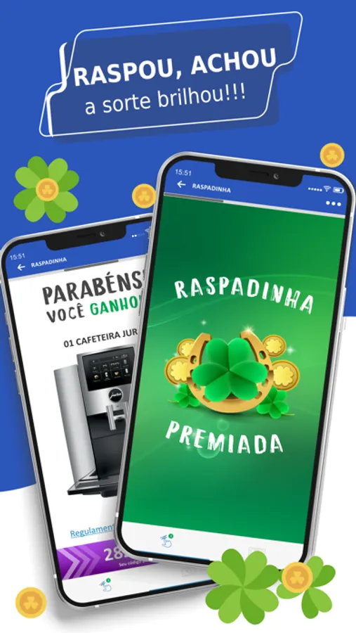 Suas compras identificadas no caixa podem gerar raspadinhas digitais e pelo aplicativo você pode tentar a sorte, raspando e concorrendo a diversos prêmios. "Raspou, achou, GANHOUU!"