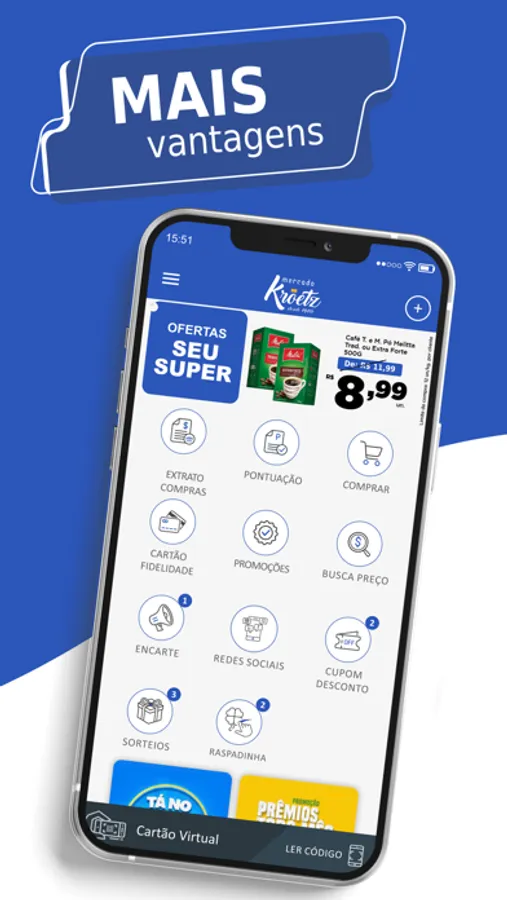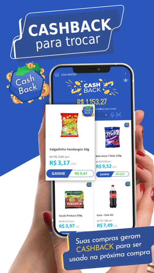 Compre e identifique-se no caixa, em suas compras pode receber CashBack de volta e no APP conferir seu SALDO. Use para pagamento nas suas próximas compras no supermercado. Funcionalidade sujeita a estar com a campanha vigente.