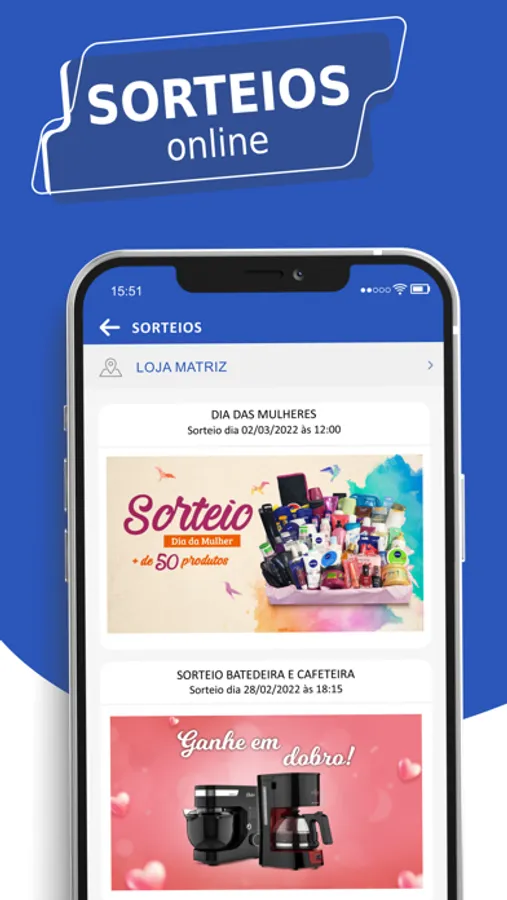 Descobrimos que nossos clientes adoram sorteios. Então por aqui você pode participar de muitas campanhas e concorrer a super prêmios. Avisaremos sempre que um novo sorteio estiver no AR.