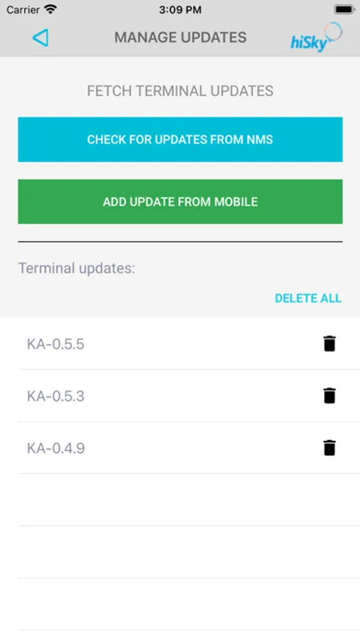 hiSky 360 application allows the user to administer the terminal and their account.