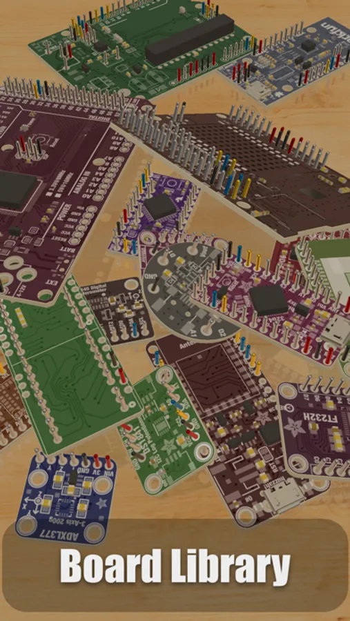 Don’t let the physical availability of parts be a constraint on your creativity! Choose from an expansive library of more than 150 physically and electronically simulated parts and over 1,000 reference boards to build and test your circuits for flaws, simulate your physical designs, and test your Arduino code in a fun sandbox environment. Each of these parts is adoringly rendered to look like the real thing so that you can enjoy the beauty of electronics.