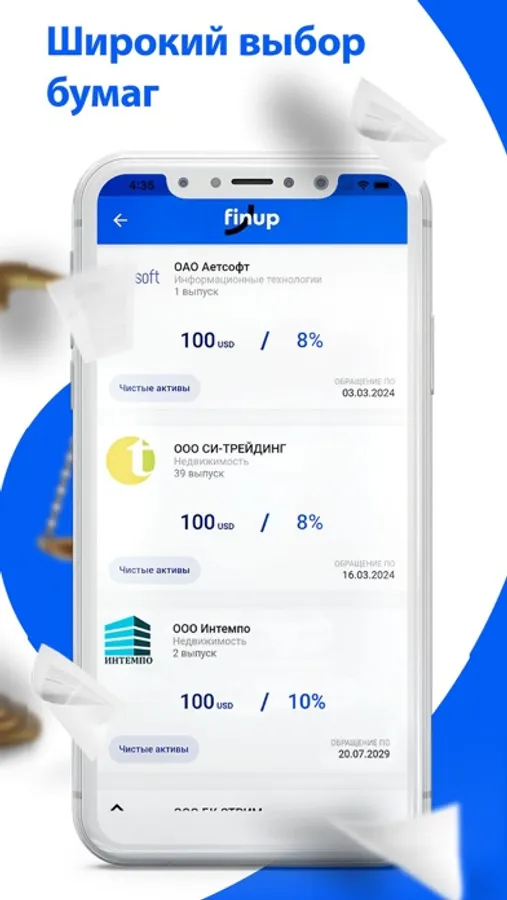 Finup — совершенно новая по формату платформа для торговли облигациями и акциями. Она дает возможность получать дополнительный пассивный доход, который значительно превышает банковский вклад и не облагается налогом согласно законодательству Республики Беларусь. Здесь найдут источник дополнительных инвестиций крупные и небольшие компании.