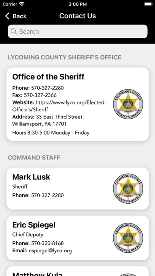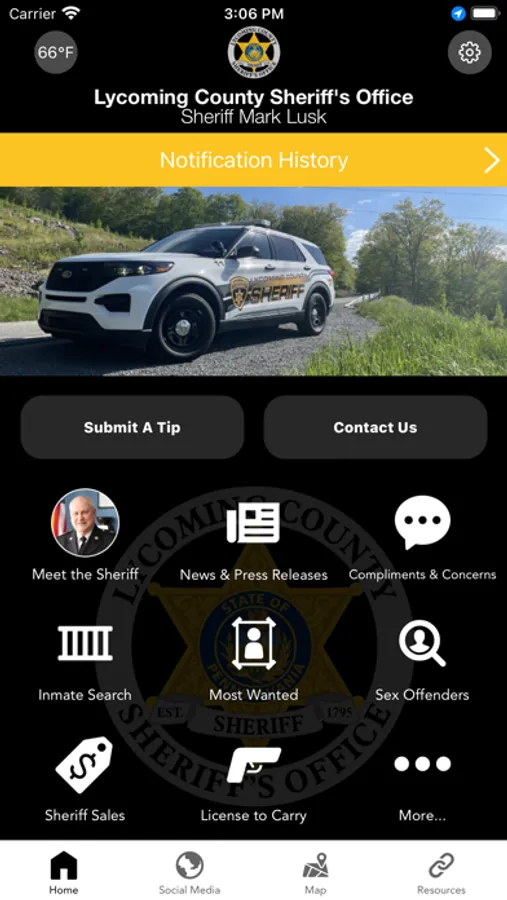 The Lycoming County PA Sheriff’s Office mobile application is an interactive app developed to help improve communication with area residents, businesses, and visitors. The app provides the community with the latest alerts, news, information, and resources. App users can submit tips, see the county's Most Wanted, access Sheriff Sales information, and see employment opportunities.