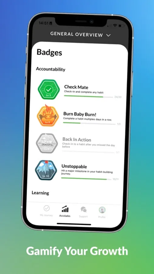 To make the process as fun and engaging as possible, you'll also be earning badges as for a variety of different behaviors within the app.