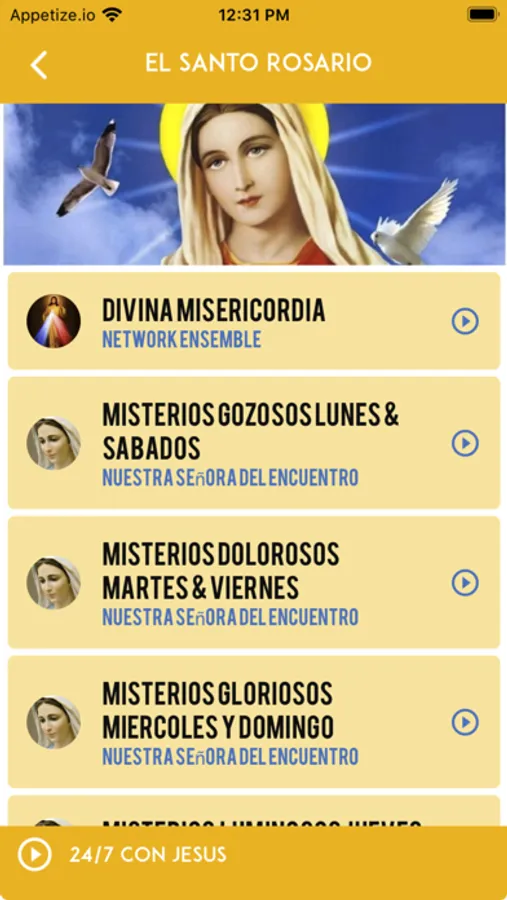 Una App inspirada por el Espíritu Santo para evangelizar a través del Santo Rosario, En esta Aplicación también podrás tener acceso a rezar el rosario de la divina misericordia, la misa del día, el evangelio del ida, la biblia católica, un calendario litúrgico siempre actualizado, calendario 2021, noticias del mundo católico, también podrás compartirla con todos tus amigos de una forma fácil y rápida y muchas herramientas mas que te mantendrán todo el tiempo 24/7 Con Jesús.