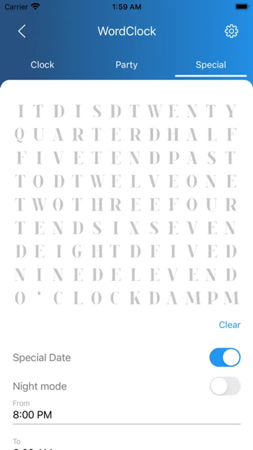 - Mit dem Dialekt kannst du dich durch die verschiedenen sprachlichen Eigenheiten der Uhrzeit probieren - von Viertel vor über 10er oder 20er Schritte wählst du aus, wie dir deine Wordclock die Zeit anzeigt