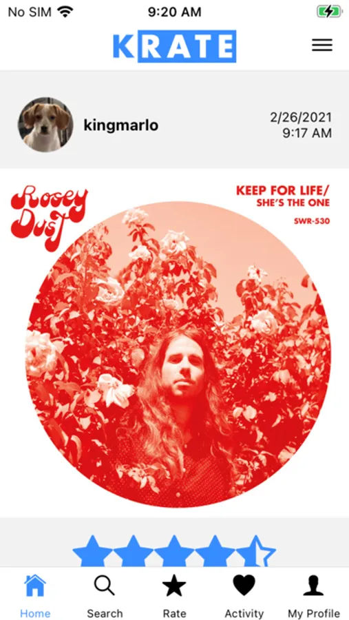 A social networking app bringing together music fans that allows you to rate Albums, Singles, and E.P.s from Spotify. Rate what you are listening to (or have listened to) out of five stars. Additionally, you can write a review to be included with your rating on each post. Follow other users and friends to see what they are reviewing and listening to. Add albums to My Krate and save them for future listening.
