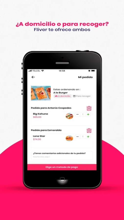 Fliver es una plataforma en línea donde puedes realizar pedidos a los restaurantes que más te gustan, eligiendo si los recoges en el establecimiento o si quieres que te lo envíen hasta la puerta de tu casa.