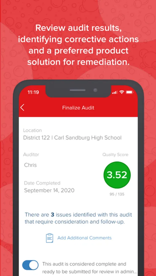 Auditors using faciliscan™ can identify corrective action items for poorly rated items in real time and choose an appropriate SC Johnson Professional® product recommendation to improve
