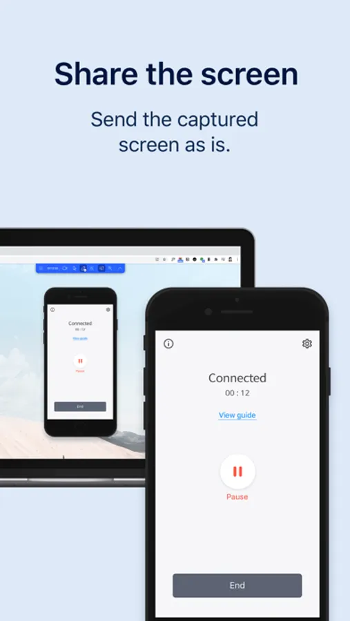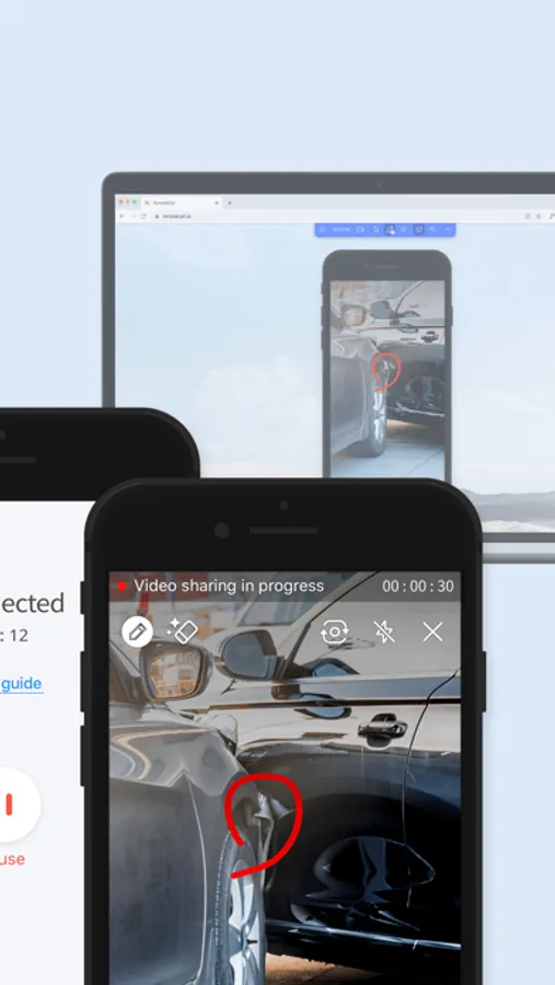 - Mobile support: solve device problems by sharing the screen and controlling it remotely.