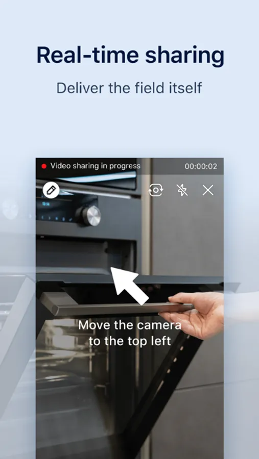 - Visual support: Share the mobile device's camera capture streaming in real time to check the site and provide solution to the problems directly.