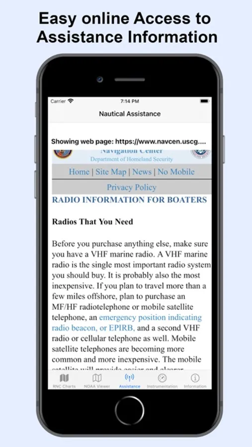 * Assitance Support - Link to Navigation Center, Radio Information.for Boaters.