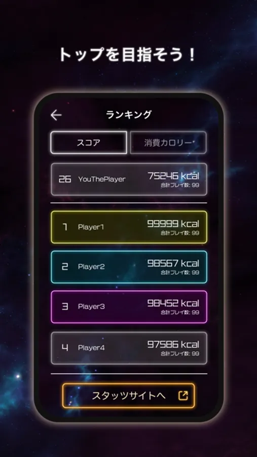 毎日の運動をゲームで楽しく、ハイスコアを目指してランキングバトル!