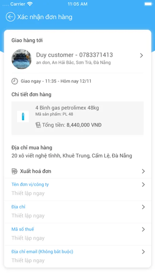 Ứng dụng đặt gas của Petrolimex, theo dõi trạng thái đơn hàng, tìm kiếm các cửa hàng gần nhất, quản lý tài khoản, tin nhắn.