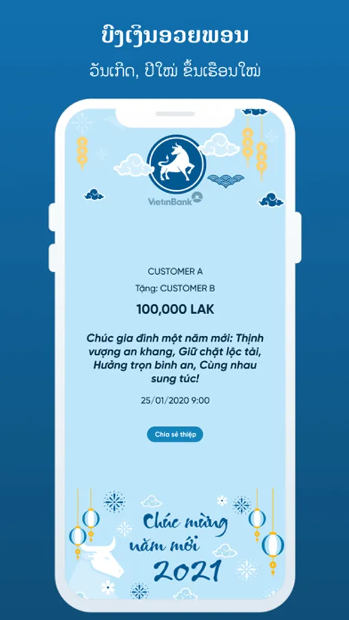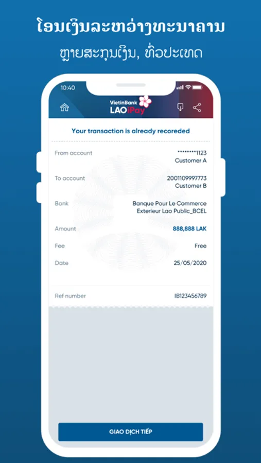 VietinBank LAOiPay is the official Mobile Banking application for Individual Customers in Laos. The application is compatible with iOS and other operating systems and can run on smartphones, tablets with Internet connection.