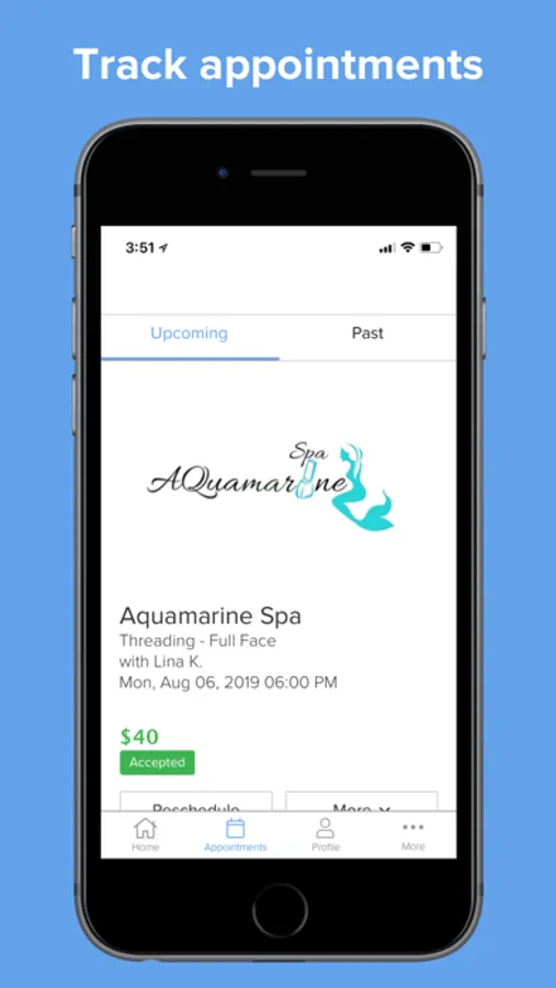 Your next appointment is just a few taps away — download the Aquamarine Spa app for free today.