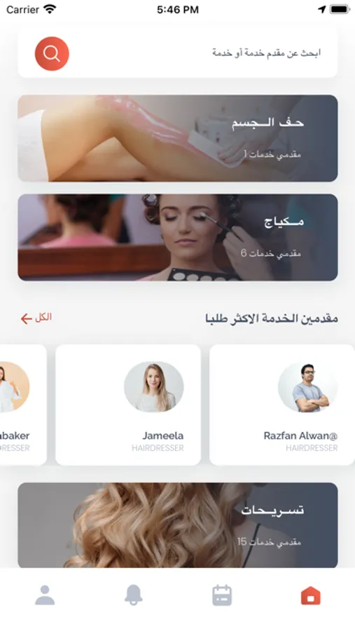 من خلال التطبيق تستطيع التعرف على مقدم الخدمة المتميز من خلال التقييمات الخاصة بالعملاء الأخرين فيتيح الى العميل تعدد الاختيارات بين مقدمى الخدمات حسب الجودة بالإضافة إلى أن العميل سيختار الموعد والمكان المحدد حتى لا يكون هناك أي وقت أو مجهود مفقودين ويمكن أيضاً للعميل طلب مقدم الخدمة للرجال والنساء في نفس الوقت ليقوموا بأداء الخدمة له ولابناءه في نفس الموعد فلا يضيع وقته في الانتظار في محلات الحلاقة او الصالونات النسائية بل يمكن تقديم الخدمة له ولعائلته بينما هو يمارس حياته الطبيعية